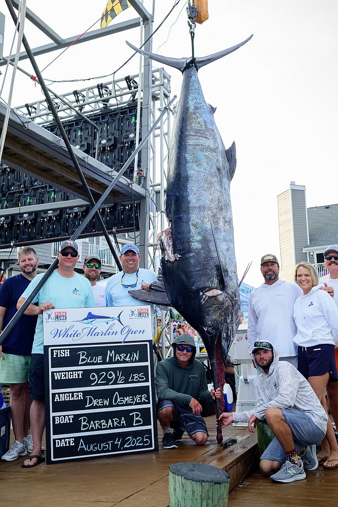 Monday – 128 boats went out and the WMO saw a game-changer catch when a 929.5 pound blue marlin was brought to the scales on the Barbara B from Atlantic Beach, NC, caught by Drew Osmeyer of Timonium, MD, – the 5th largest blue marlin caught in White Marlin Open history! Also on the Barbara B – was a 32 1/2 pound dolphin caught by Andrew Schreiber of Essex, MD. Both fish held the top of the leaderboard throughout the week.