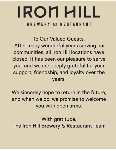 Read MoreUPDATED: Iron Hill Brewery & Restaurant Closes All Locations