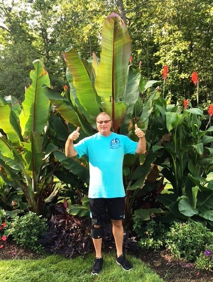 Nancy Smith – Milton – Jake in his tropical backyard garden. Click for full view