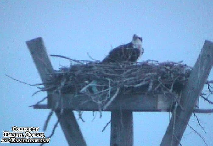 Osprey spotted in nest on the UD camera in Lewes. Click for full view