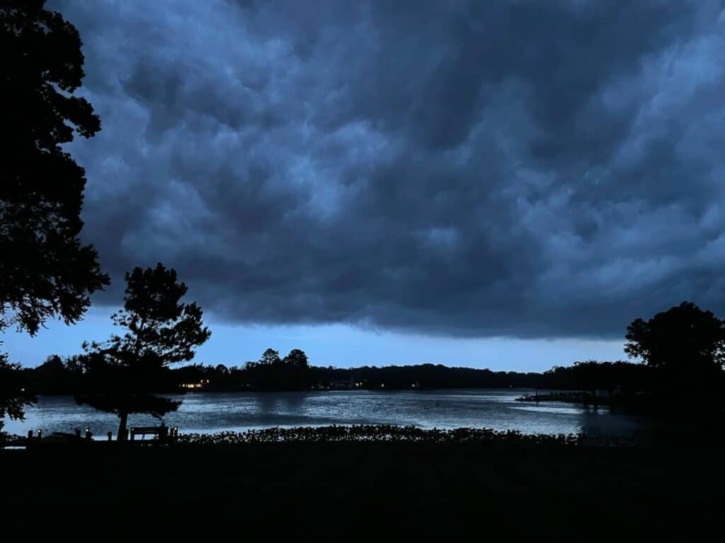 Lew & Rachel Messick-Klensch – Milford – Stormy weather passing and a campfire – but not a drop of rain / Click for full view