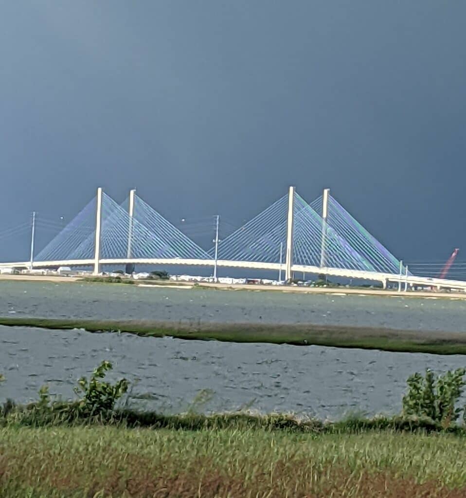 Joyce Baywood – Ocean View – Indian River Inlet Bridge with storm clouds gathering / Click for full view