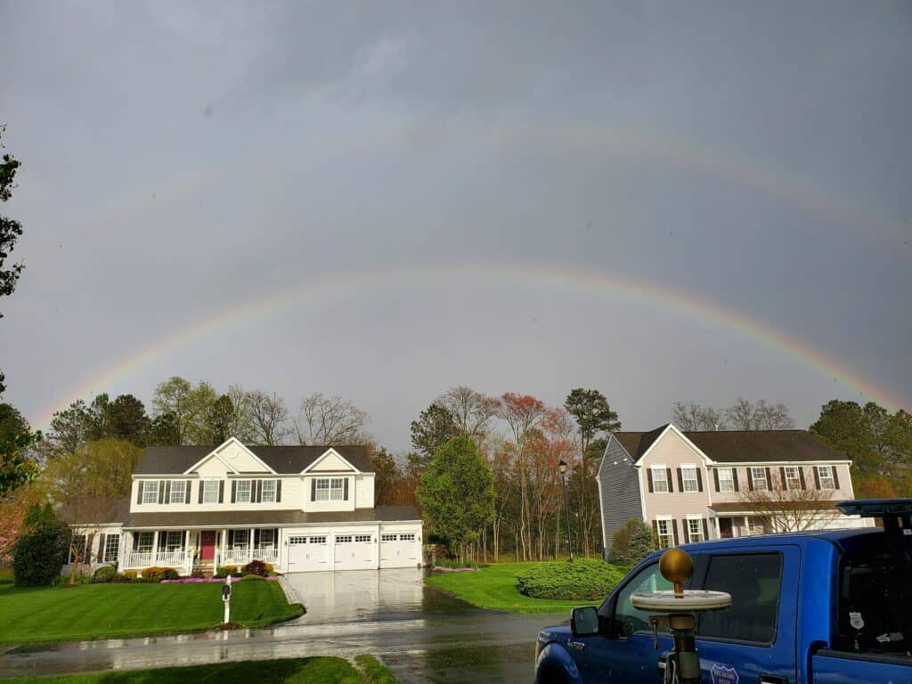 Greg Ryan – Millsboro – Calm after a stormy Delmarva Monday – with a double rainbow / Click for full view