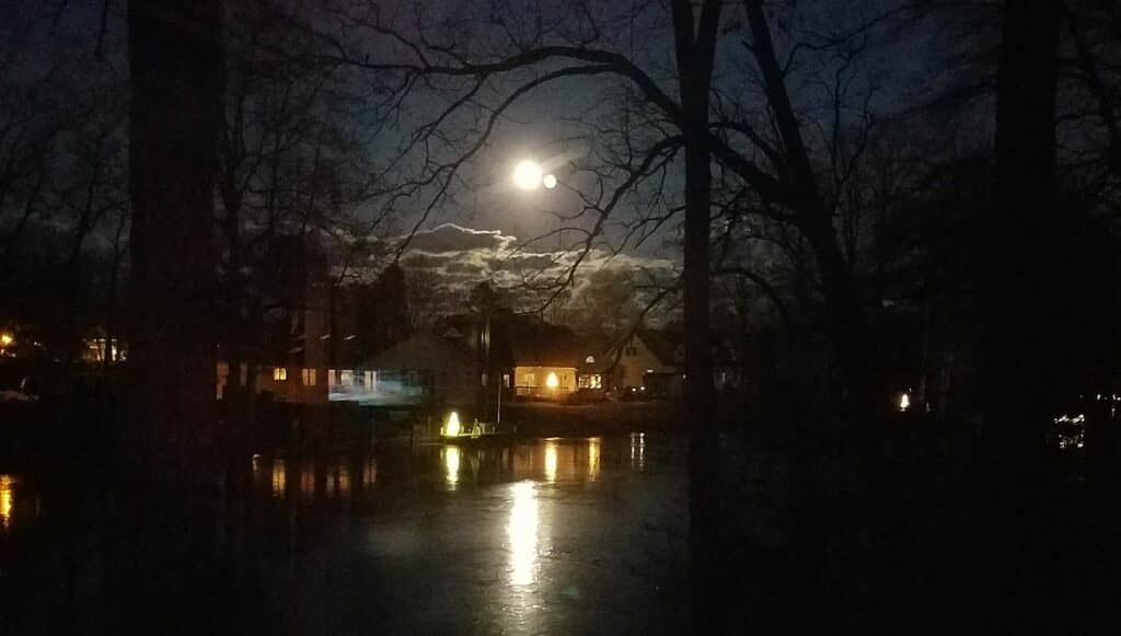 Margaret May – A New Year’s moon over Red Mill Pond / Click for full view