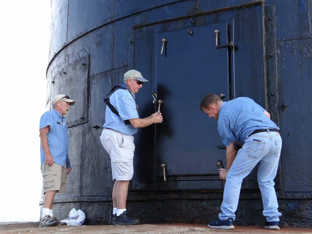 Barb Moulinier – Rehoboth Beach – Locking up the Harbor of Refuge Lighthouse for the season / Click for full view