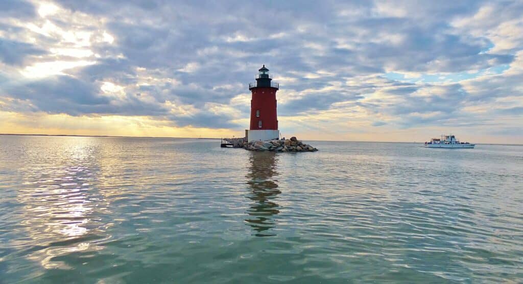 Red Moulinier-Rehoboth Beach – Sunset Cruise on the Delaware Bay at the Delaware East End Breakwater Light / Click for full view