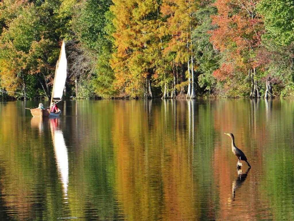 Barb Moulinier- Rehoboth Beach – Trap Pond State Park -Sailboat & Cormorant / Click for full view