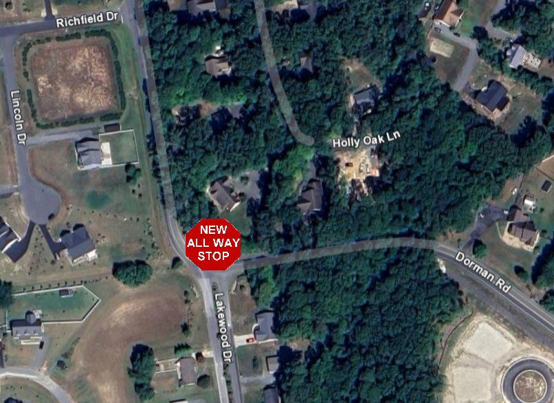 DelDOT advises that on Monday, October 6th – Dorman Road at Lakewood Drive in the Angola area will be converted to an All Way Stop. Work will be done between 9am and 3pm with new signage and pavement markings done. Flaggers will be on-site to direct drivers at the intersection.