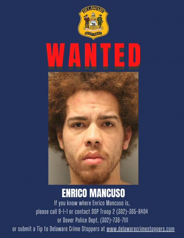 The Delaware State Police Troop 2 Robbery Unit and Dover Police Department continue to investigate these robberies. Detectives are asking anyone with information as to Mancuso’s whereabouts to call 9-1-1 immediately or contact State Police Detective Patterson at 302-365-8404 or Dover Police Detective Goad at 302-736-7111 or Crime Stoppers at 800-847-3333.