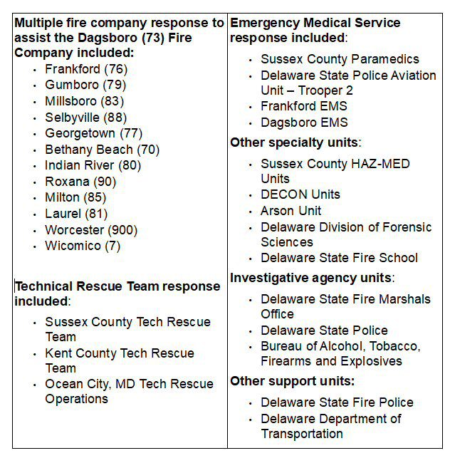 The response to this incident was immense.  Indian River VFC listed the various agencies that responded to the house explosion: