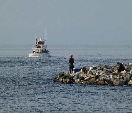 Barb Moulinier - Rehoboth Beach - Fishermen on the rocks at Roosevelt Inlet in Lewes