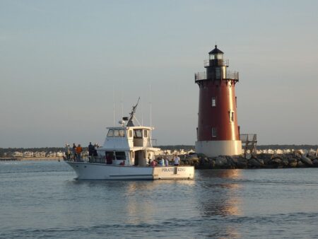 Click For Full View Red Moulinier - Rehoboth Beach - Sunset Cruise passing the East End Light in the Delaware Bay