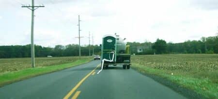 ML - Driving in to work one morning this truck with a porta-potty attached to the back was in front of me - with just a wee bit of TP sticking out. As I follow... ML - Driving in to work one morning this truck with a porta-potty attached to the back was in front of me - with just a wee bit of TP sticking out. As I followed the truck down Harmons Hill Road, the TP tail grew longer and longer as it flapped in the breeze. Finally got to snap this shot with my cell phone before we got to the turn off to Independence where I left the truck still heading towards its final destination.