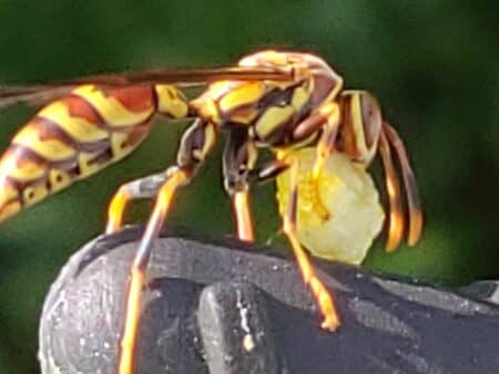 Kimberly Sprout - Millsboro - Wasp gnoshing on a caterpillar on the car antenna in West Ocean City... Kimberly Sprout - Millsboro - Wasp gnoshing on a caterpillar on the car antenna in West Ocean City