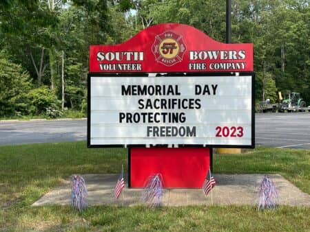 Click For Full View Dianne Burk - Memorial Day sign at South Bowers VFC on Thompsonville Road north of Milford
