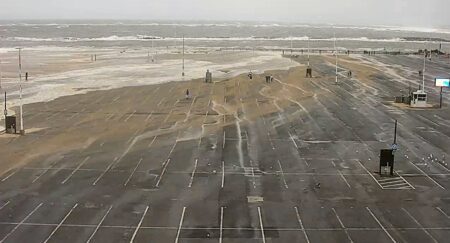 OC LiveCam - The Inlet Parking Lot being covered in blown sand and water. Can't see where the rock jetty is - from the overwash from the ocean into the inlet. ... OC LiveCam - The Inlet Parking Lot being covered in blown sand and water. Can't see where the rock jetty is - from the overwash from the ocean into the inlet. Lots of people checking it all out!