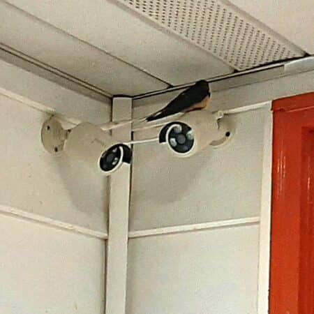 Click For Full View ML - Our barn swallows have returned - well at least one of them has! Mama or Papa has been hanging on the security camera each morning this weekend as I arrived to work at 5am. I expect mudding and nest building will commence soon.