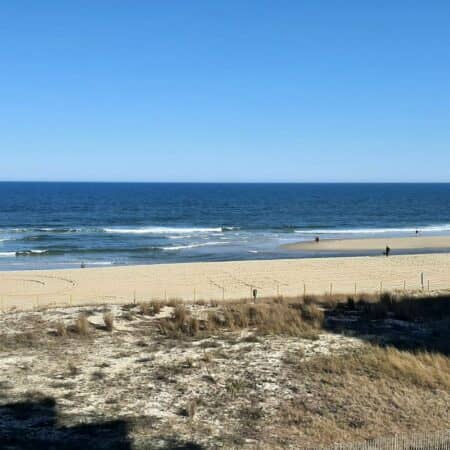ML - Big sand bar off 29th Street in Ocean City - but where the waves are coming in - there's a 3 to 4 foot ledge from the beach to the water. There's another ... ML - Big sand bar off 29th Street in Ocean City (it also sits over an old stone jetty) - but where the waves are coming in - there's a 3 to 4 foot ledge from the beach to the water. There's another big sand bar to the north of the ledge as well. The sand bars were the favorite spots for beach walkers at the end of March.