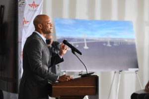 “From the tragic early morning hours of March 26, to the coordinated recovery efforts that followed, our state has persevered with Maryland toughness and Baltimore strength,” said Lt. Gov. Aruna K. Miller. “And today, we stand near the banks of the Patapsco River taking the next step in our rebuild: unveiling plans for a pillar of engineering and transportation brilliance that will stand watch over the harbor, connecting Marylanders to opportunities and welcoming commerce into our port.”