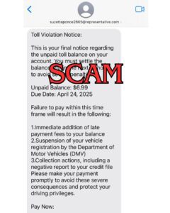Phony texts continue to circulate claiming recipients have debt to pay for using a toll road. The Maryland Department of Transportation in a statement makes clear that Maryland does NOT send texts for toll debt. Officials say this scam seeks to obtain your credit card numbers, user names & passwords. To report these scam texts to FBI, go to http://ic3.gov.