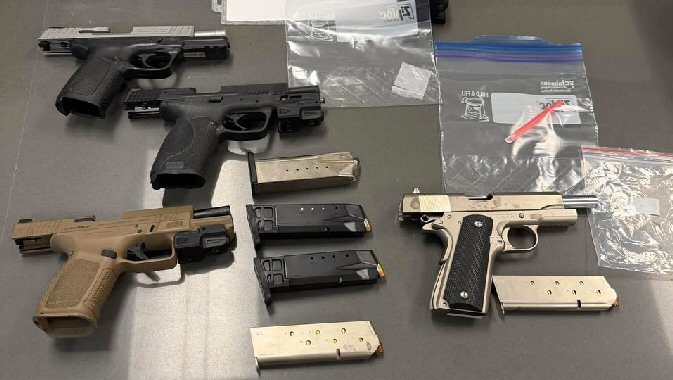 Concerned motorists on Route 113 contacted Maryland State Police in Berlin about a pickup parked on the shoulder of the road. While troopers spoke with the driver, they observed unusual behavior and during an investigation found 4 handguns and suspected heroin and cocaine in his possession.