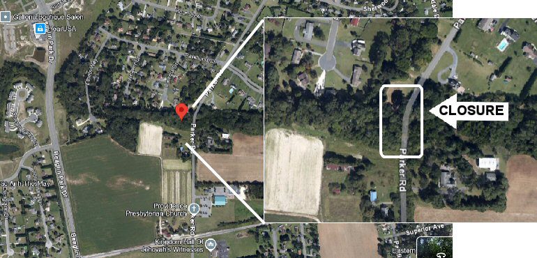 Wicomico County officials report the cross pipe at Peggy Branch Creek on Parker RD will be replaced August 4th through August 6th and Parker Road between 323 Parker RD and 406 Parker RD will be closed during these days.