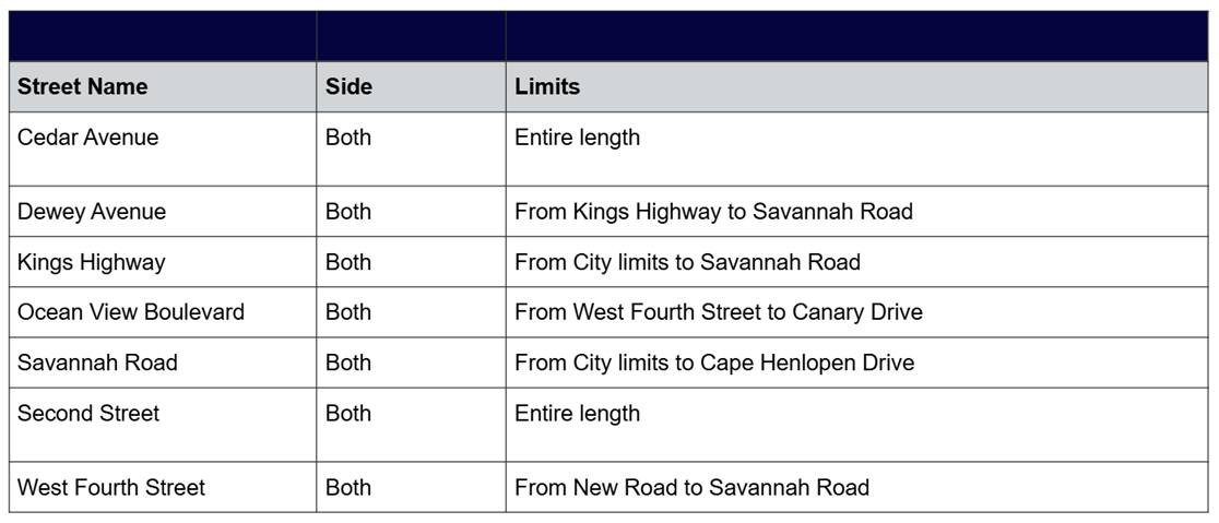 - Savannah Road – From City Limits to Cape Henlopen DriveÂ