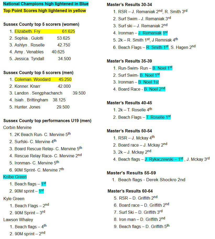 Sussex County Lifesaving Association (SCLA) 2-Time National Champions