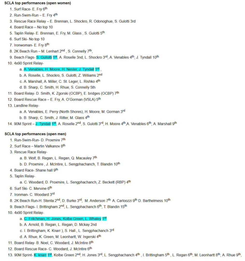 The event brought together top lifeguards and lifesaving teams from across the nation, testing athletes in a variety of challenging surf and rescue events. Facing powerhouse teams from both coasts, SCLA’s performance reflected the exceptional training, skill, and resilience of its members.
