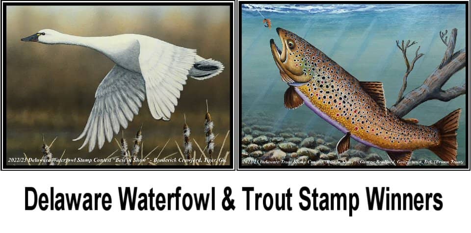 The results are in, and two artists have won top honors in Delaware鈥檚 Waterfowl Stamp and Trout Stamp art contests. A painting of a tundra swan by Broderick Crawford of Tiger, Ga., will grace the 2022/23 Delaware Waterfowl Stamp. In the 2022 Delaware Trout Stamp art contest, George Bradford of Georgetown, Del., took the top prize with his…