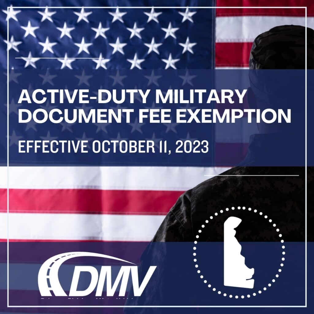 Effective October 11th, active-duty military and their dependents may qualify for a document fee exemption, according to the Delaware Division of Motor Vehicles (DMV). The exemption includes the registration of a motor vehicle by a member of the military (active, reserve or national guard) and their dependent family members who are stationed on either a…