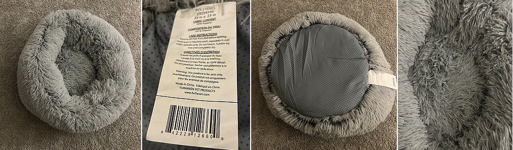 DESCRIPTION: Gray 100% polyester practically new dog bed. Only used once. Very fluffy and extremely soft. The original price was $38.