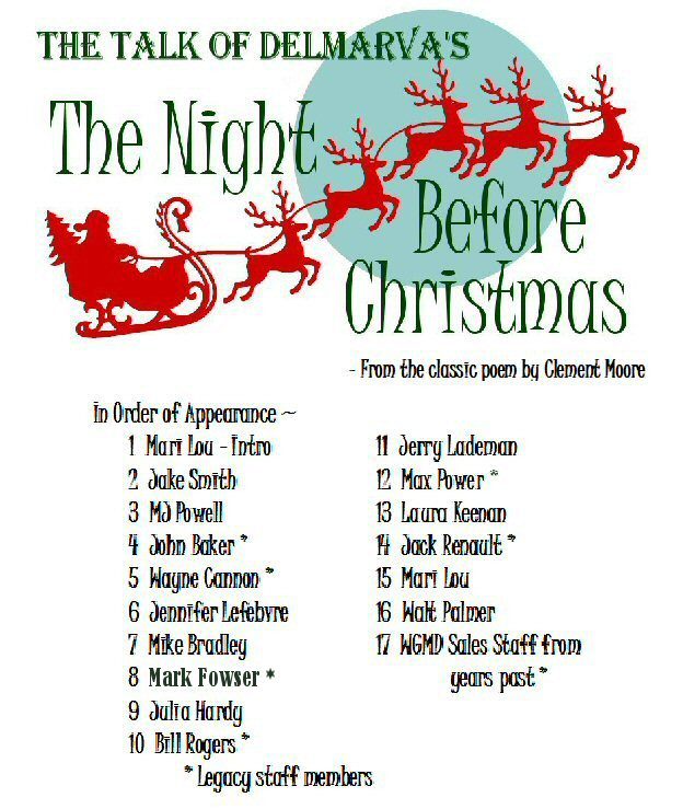 The Talk of Delmarva has aired this staff reading of The Night Before Christmas for nearly 20 years.聽 It’s our gift from the Talk of Delmarva Family to yours.