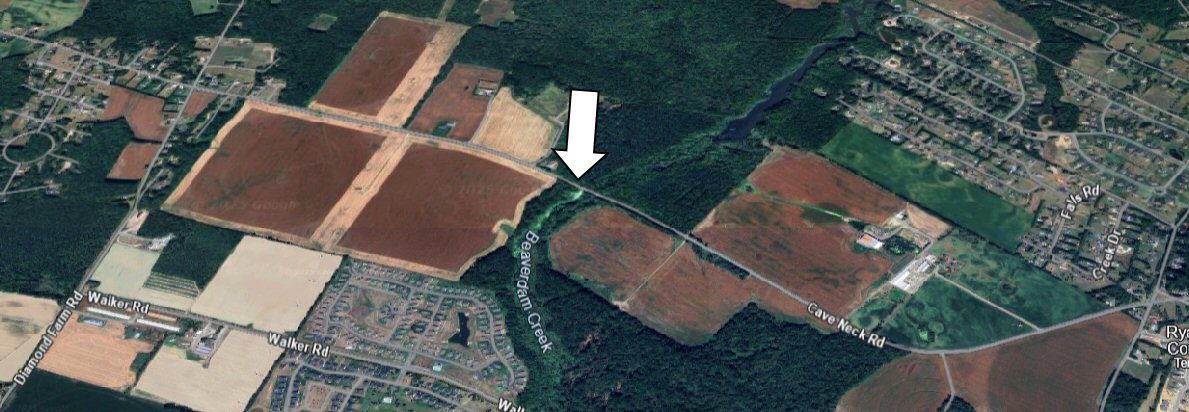 Motorists wanting to travel east on Cave Neck Road will turn right onto Diamond Farm Road, left onto Walker Road, and left onto Hudson Road returning to Cave Neck Road.