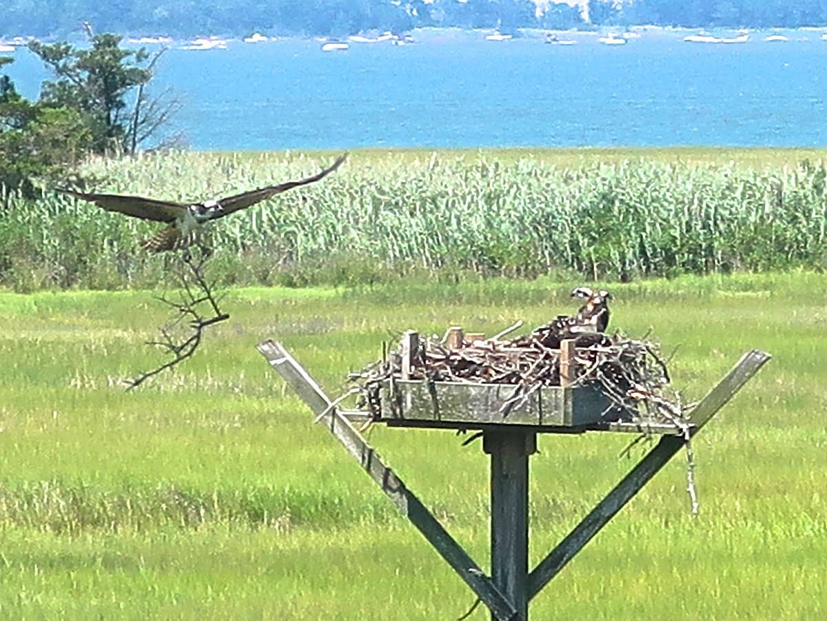 Dave Nelson – Ocean View – Osprey bringing a branch to its nest in the Indian River Bay