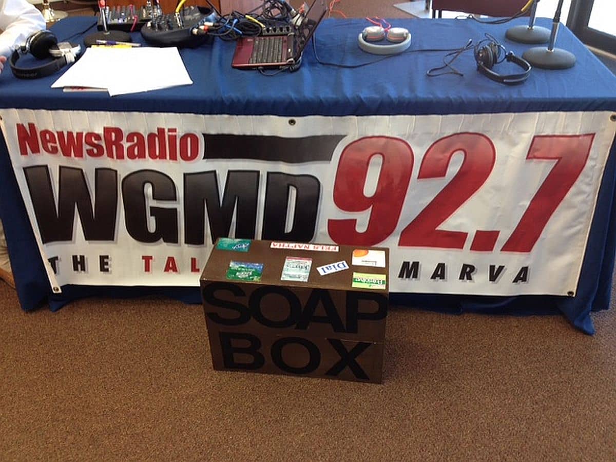 WGMD Throwback Thursday Picture of the Day goes back to around 2013/2014. People would come to Atlantic Cellular when the WGMD midday show was live once a week. They would line up for a chance to put in their 2 cents to the conversation. At one point, Walt created the Citizen Soap Box for people to stand on and talk – or rant.