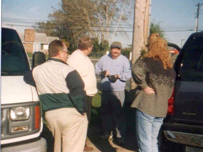 WGMD Throwback Thursday Picture of the Day – from 2009 and the Frozen Alive promotion. In the parking lot at the old Bill’s Sport Shop and Atlantic Cellular – chatting with WGMD part timer – the late “Captain Joe” Corcoran (in the blue sweatshirt). To his right, the late Rick Cleaver and with her back to us, I believe is Susan Cleaver Shea. Not sure who the other gentleman is in the green & white.